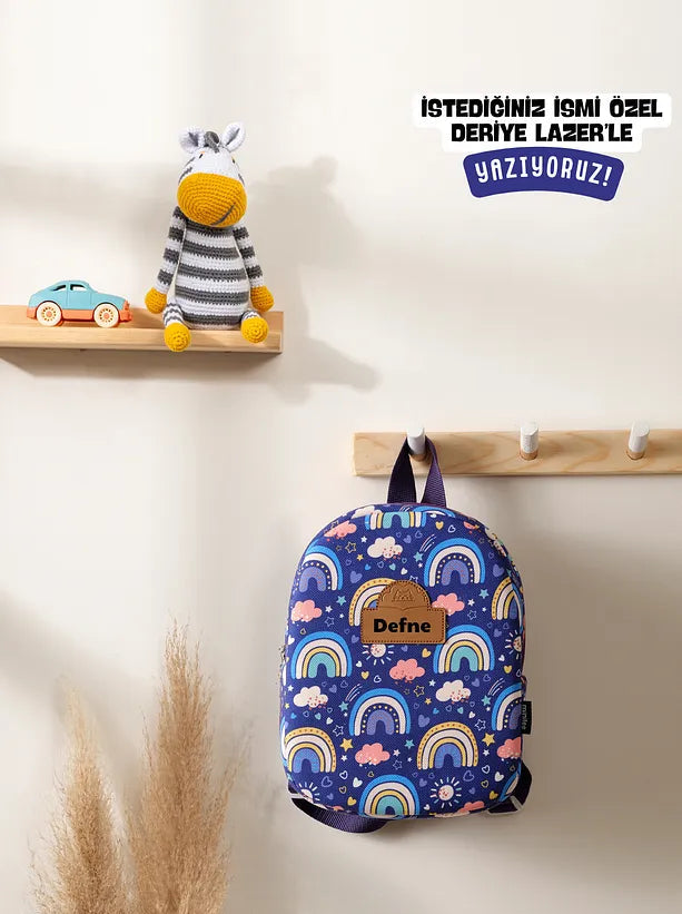 Colorful nursery bag with happy clouds, rainbows, and sunshine. Soft and durable design. This bag can be personalized with your child's name embroidered on the front — included in the price!secure delivery available.